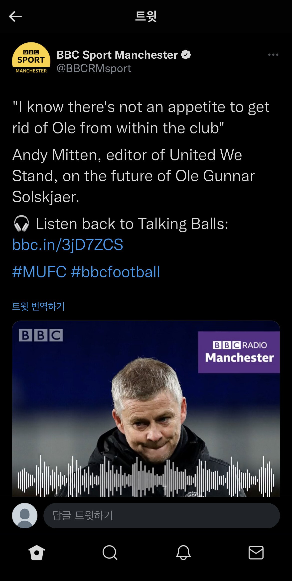 앤디 미튼 “ 클럽 내에 솔샤르를 경질하고자 하는 욕구가 없는 것으로 안다”