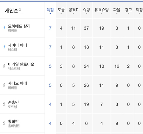 아무리 봐도 어색한 '현재 EPL 득점 순위'