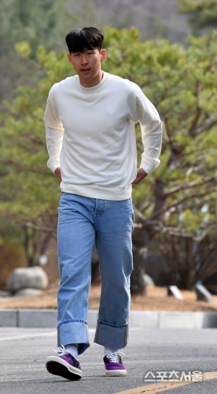 (아마도 오버핏 상의와 통 넓은 바지 때문인 듯? 손흥민의 바지가 신기한 윙크스ㅋㅋㅋ)