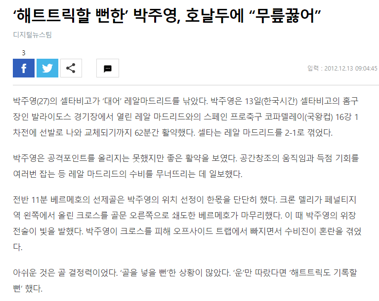 해트트릭할뻔도르 수상자 박주영ㅋㅋㅋㅋ