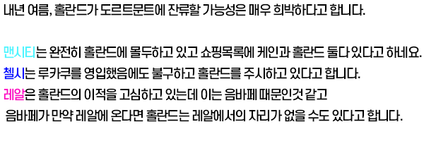 [홀란드, 돌문 떠나면 첼레맨중 하나로 간다?]