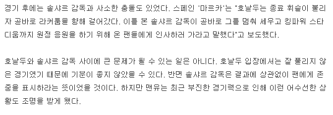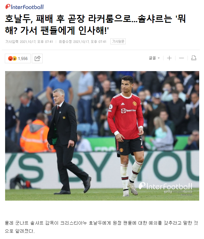 [레스터 원정 경기 패한 후 호날두의 행동에 대한 솔샤르 일침]
