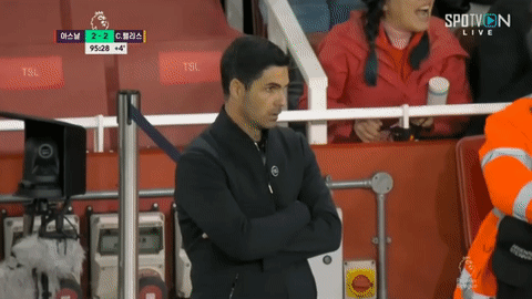무승부로 경기 끝나고 노래 한곡조 뽑는 아르테타.gif