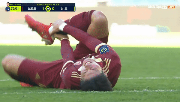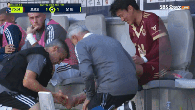 [필드에서 쓰러진 후 벤치에서 너무 아파하는 황의조.gif]
