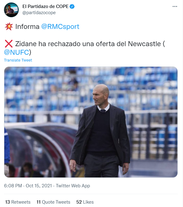 [[속보] 지단, 뉴캐슬 감독직 거절]