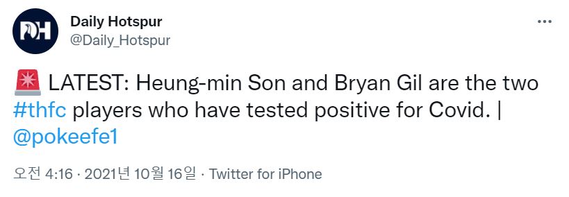 | (Daily Hotspur) 손흥민, 코로나 확진 판정 | |
