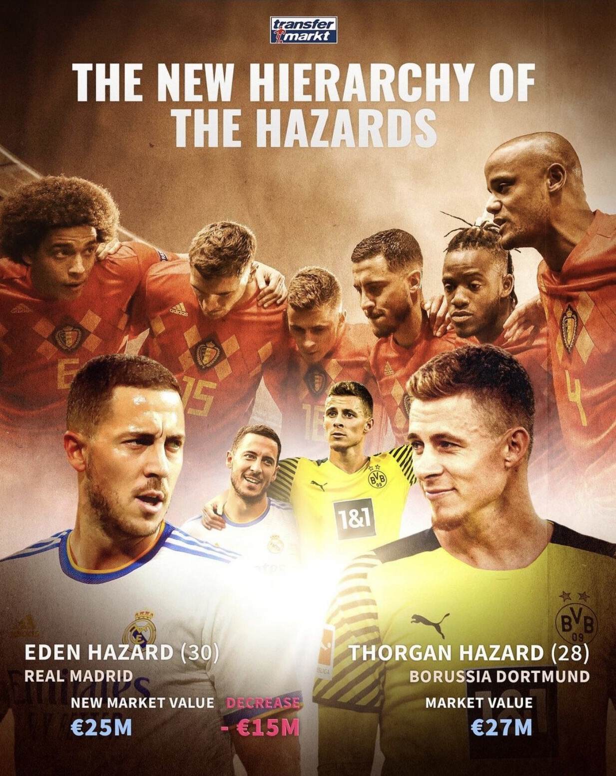토르강 아자르가 데뷔 이후 처음으로 친형 에당 아자르의 시장가치를 뛰어 넘었습니다.