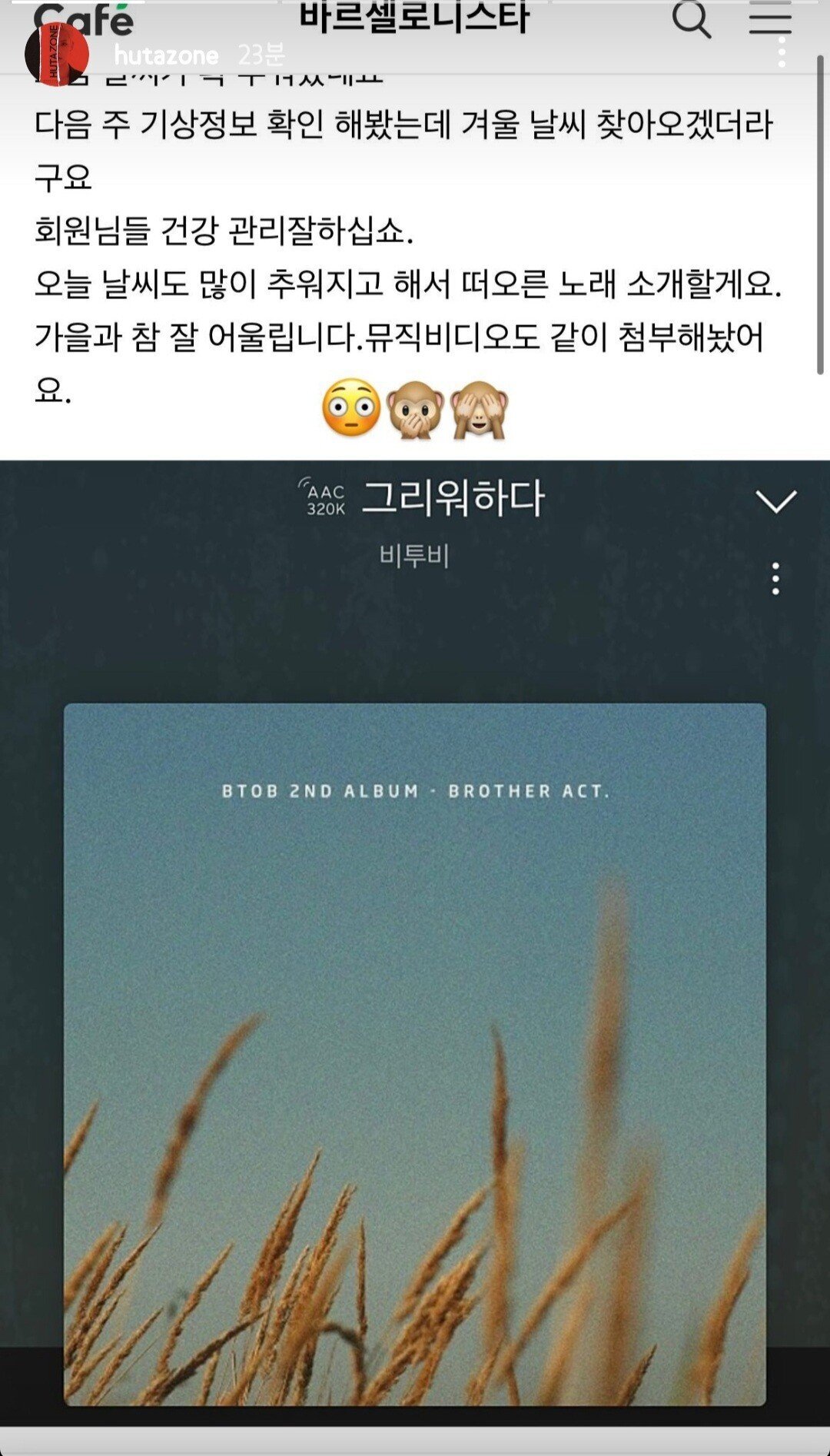 바르셀로나 팬 카페 눈팅 인증한 '아이돌 가수'