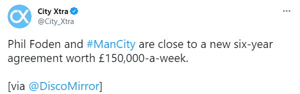 [[맥도넬] 필 포든, 맨시티와 6년 재계약 합의]