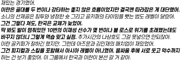 날카로운 분석을 해준 사람도 있지만 김민재와 손흥민의 칭찬이 진짜 많네요 ㄷㄷ......