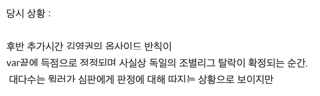 심판 : VAR 봤는데, 공이 너네 선수 맞고...