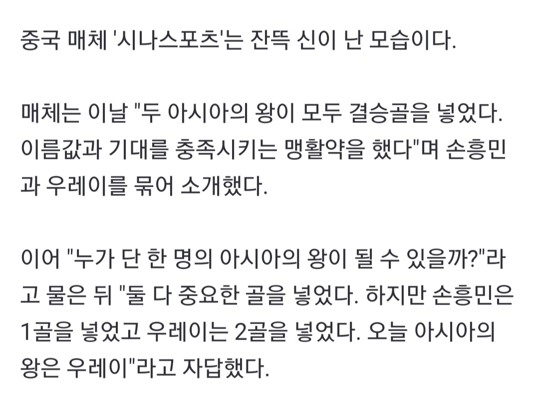 [중국 "손 & 우레이 누가 아시아의 왕인가"]
