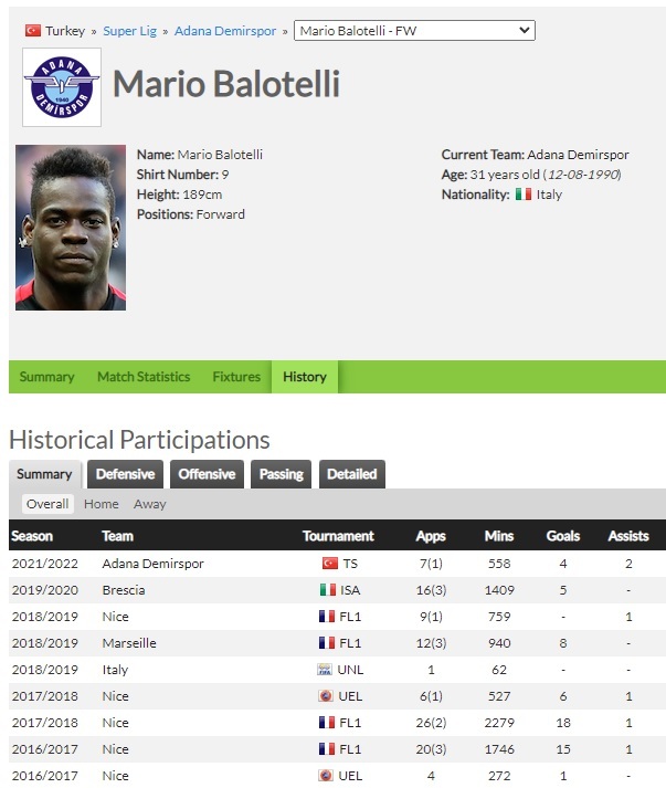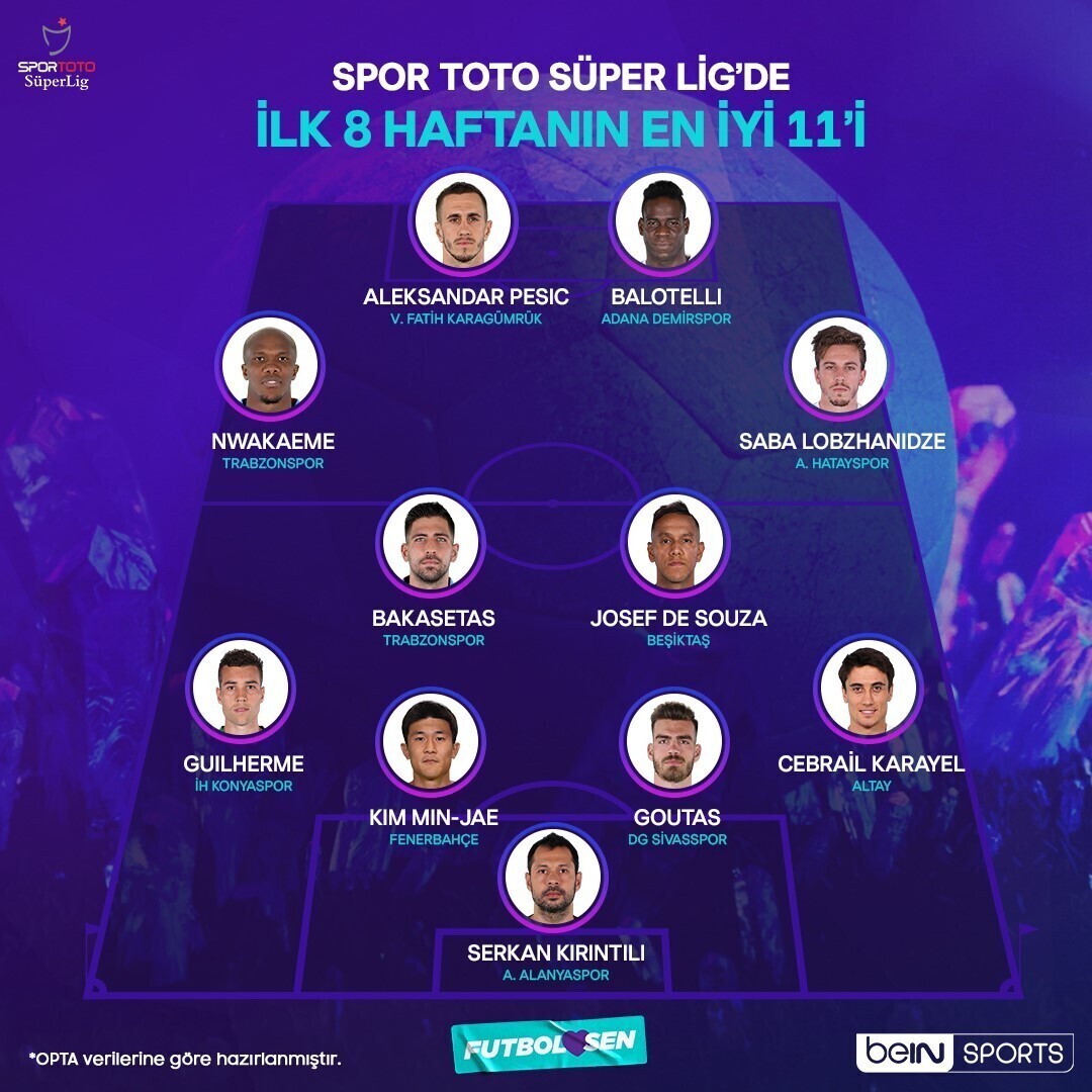 터키 쉬페르 리그 1~8라운드 베스트 11에 선정된 발로텔리