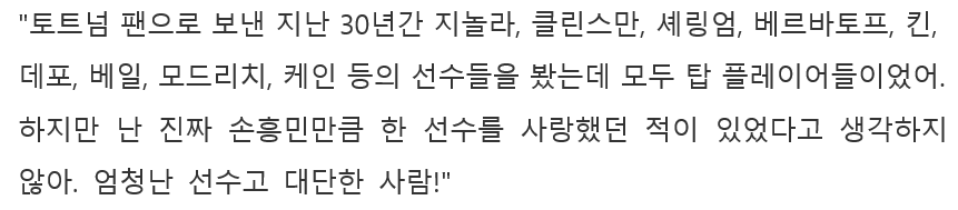 ["이런 선수는 없었어.." 토트넘 30년 팬이 말하는 손흥민]
