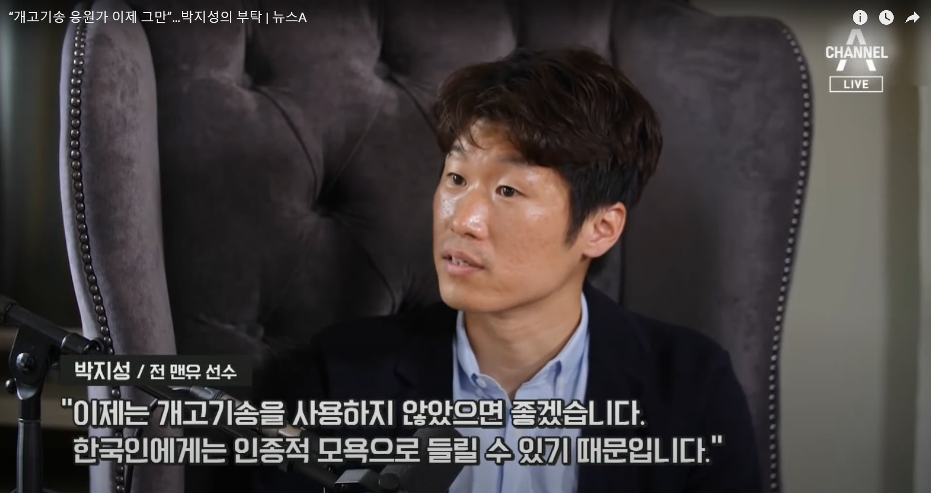 개고기송의 사용을 하지 말아달라고 호소한 박지성