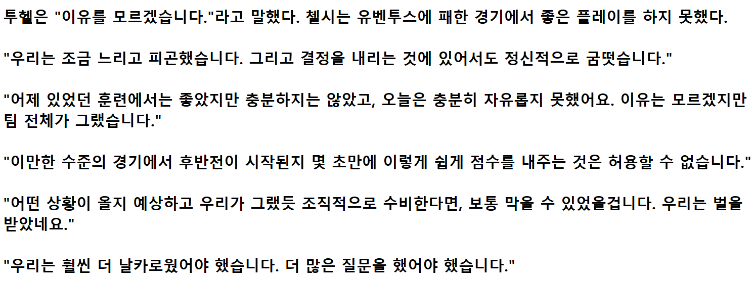 오늘 경기력에 어리둥절한 투헬 "잘 모르겠어요.."