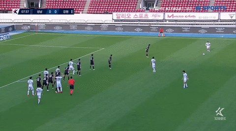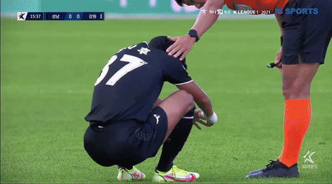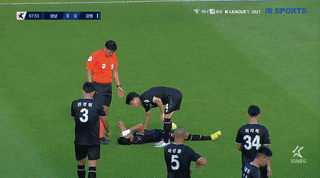 [강한 프리킥에 머리 맞고 실려간 '근본 배바지' 유망주.gif]