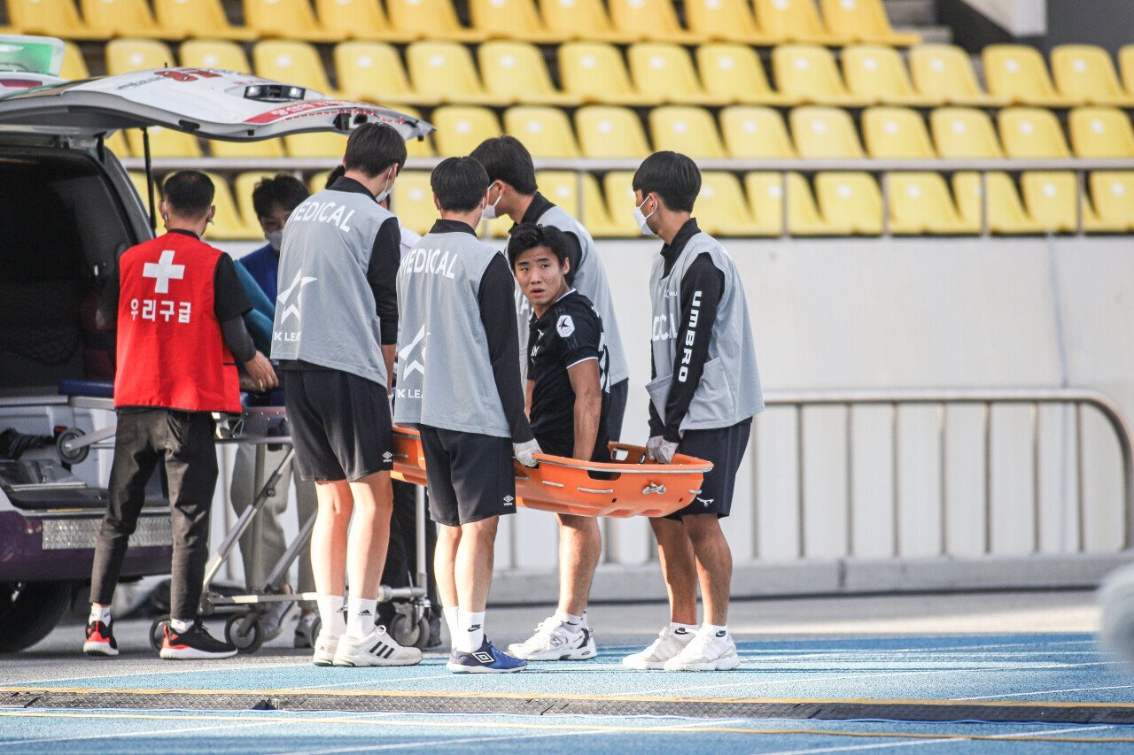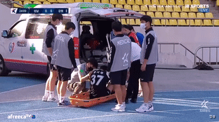 이송되는 순간에도 경기장에서 눈을 떼지 못하는 근본 '홍시후' 빠른 회복을 응원합니다.