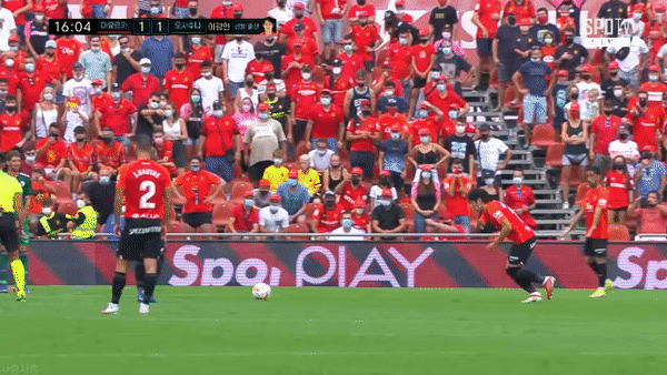 어제자 상대 골키퍼 얼어붙게 만든 이강인의 환상 프리킥.gif