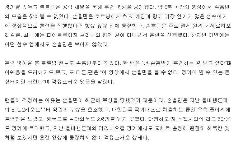 [토트넘 훈련 영상에서 보이지 않는 손흥민]