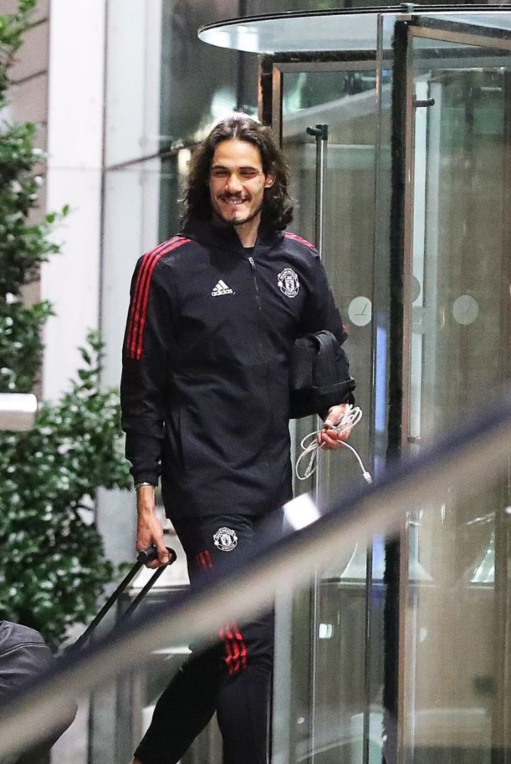 [호텔에 도착한 맨유 선수들과 카바니]