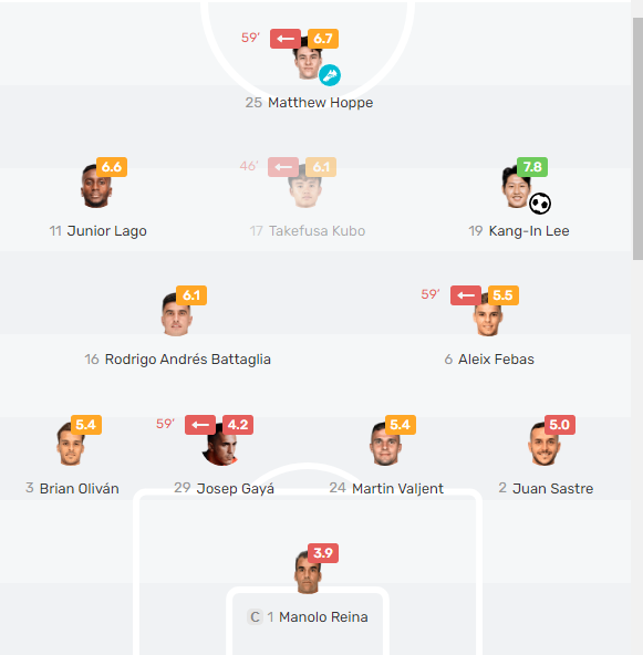 그리고 Fotmob의 평점...6실점한 마요르카 팀에서 이강인 홀로 빛나는 7.8!!!