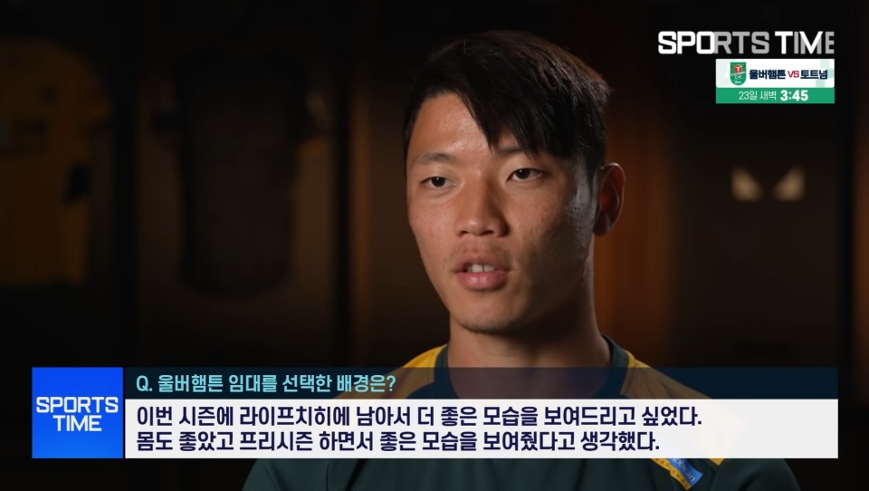울버햄튼 임대신분인데 강하게 인터뷰를 했군요ㄷㄷㄷㄷ