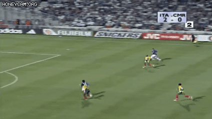 카메룬 수비진 사이를 힘으로 비집고 들어가서 골