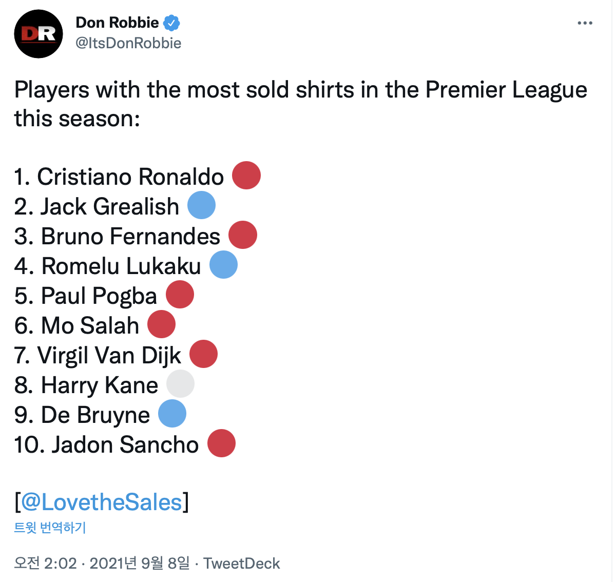 [프리미어리그에서 유니폼을 가장 많이 판매한 선수는?]
