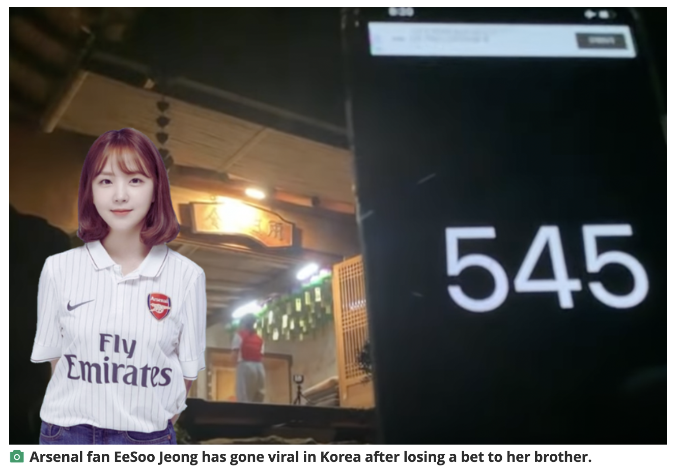 한국의 한 아스날 지지자는 그녀의 사촌에게 내기에서 진 후 종교 사원에서 천 번 절을 했다. 아스날에 대한 폭넓은 비디오로 인기를 얻은 유명한 유튜버인 정이수는 시즌 3번째 리그 경기에서 미켈 아르테타 팀이 맨체스터 시티와의 경기에서 지면 천 번 절을 하겠다고 약속했다.