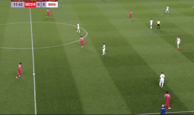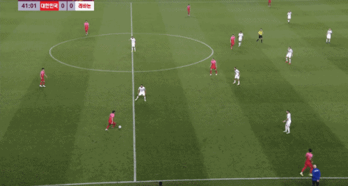 [수비수 '김민재'의 레바논전 전진 플레이.gif]