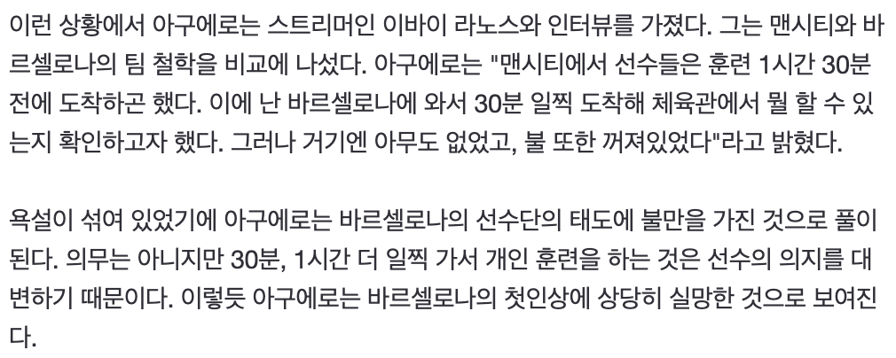 뭔가 저런얘기를 한다는것 자체가 일단 불만이 많은듯 해 보이는 아구에로......
