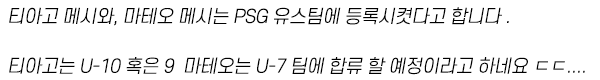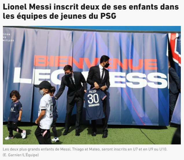 출처 : https://www.lequipe.fr/Football/Actualites/Lionel-messi-inscrit-deux-de-ses-enfants-dans-les-equipes-de-jeunes-du-psg/1282065