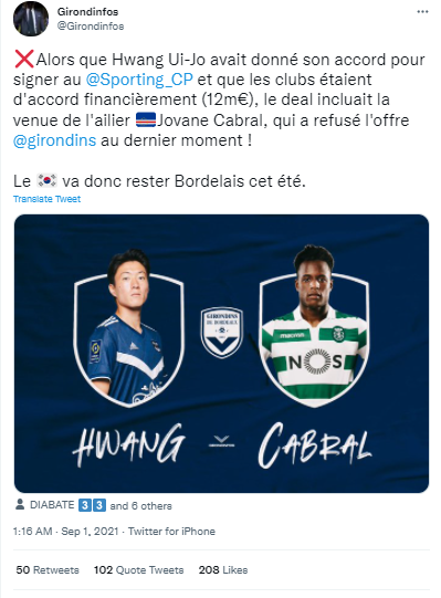 [[레퀴프] 황의조, 스포르팅 이적 실패]