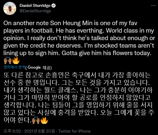 https://twitter.com/DanielSturridge/status/1432280068236140547