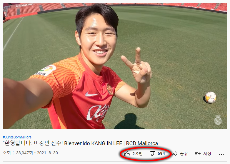 [이강인 마요르카 입단 영상에 달린 싫어요 수]