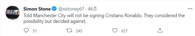 맨유 1대장 - 맨시티 호날두 영입 안함ㄷㄷㄷㄷ