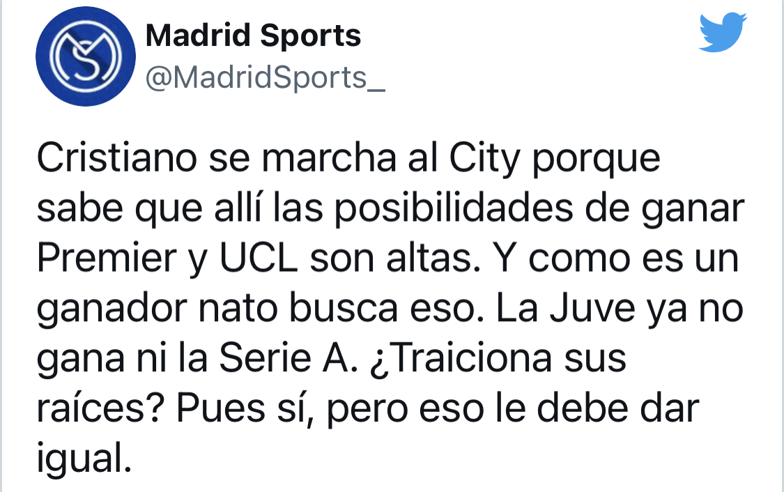 호날두는 리그, 챔스 우승 가능성이 높은 맨시티로 갈 것이다. 뿌리(맨유)를 배신하는 일이지만 호날두에겐 중요하지 않다.