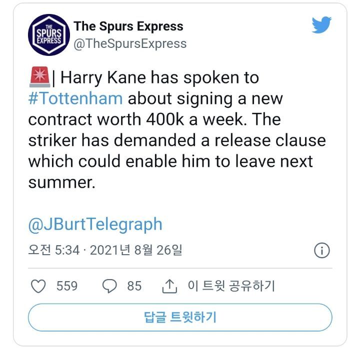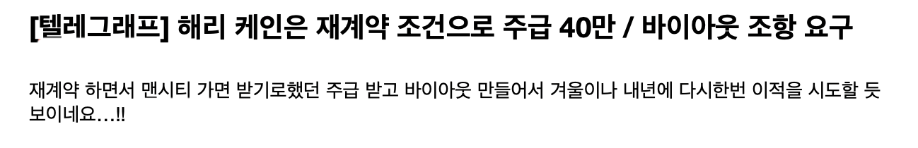 [해리 케인은 재계약 조건으로 주급 40만 / 바이아웃 조항 요구]