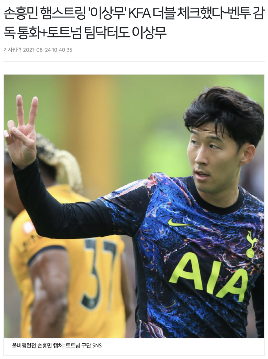 그리고 대한축구협회는 추가 확인 작업을 했다. 대표팀 의무팀에서 토트넘 구단 팀닥터와 접촉해 '이상 없다'는 확인을 받았다고 한다.