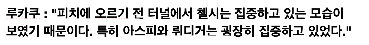 결과론적인 얘기지만 정말 첼시 선수들은 뭔가 비장한게 눈에 보이고 맨시티 선수들은 뭔가 여유로운 분위기였네요ㄷㄷㄷㄷ