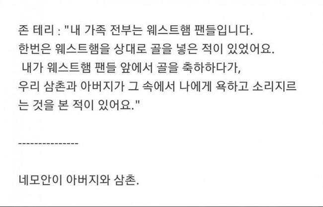 [축구 잘한다고 가족한테 욕먹은 '존 테리'ㅋㅋㅋㅋ]
