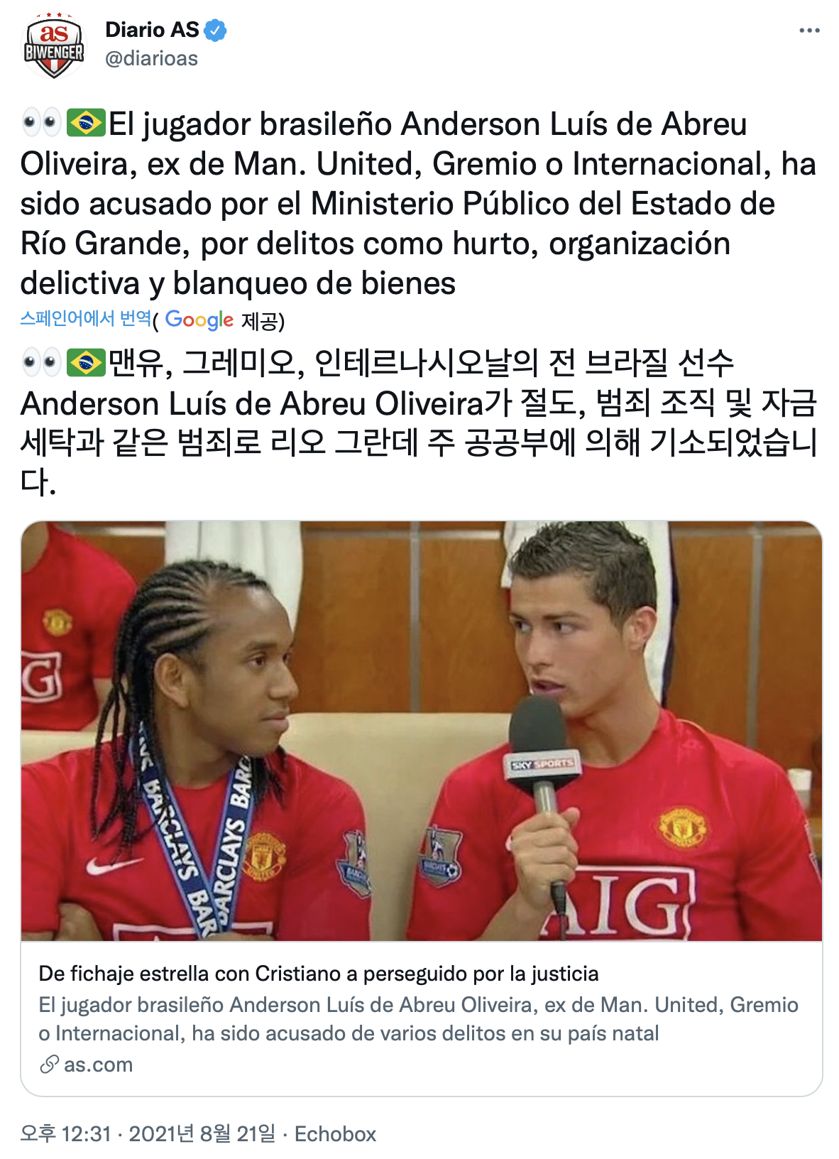 [범죄 트리플 크라운.. 맨유 출신 안데르송 근황]