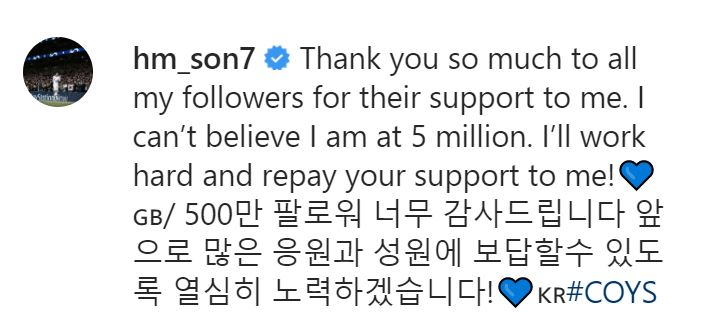 [한국 운동선수 최초 인스타 팔로워 500만 돌파한 손흥민ㄷㄷ]