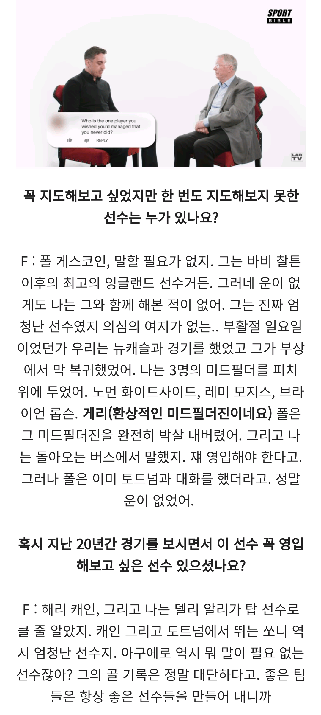 지도해보고 싶은 선수로 손흥민을 뽑은 '퍼거슨'