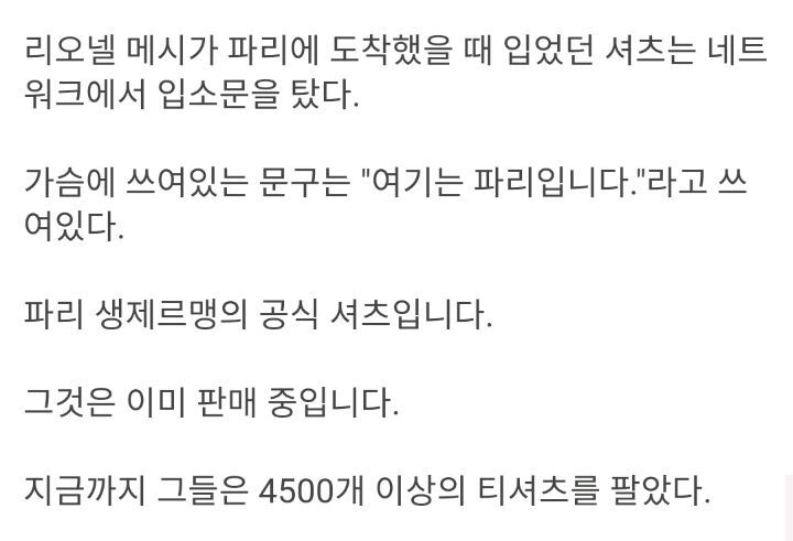 [메시 파리 입국 이후 4500장 이상 넘게 팔린 티셔츠ㄷㄷㄷㄷ]