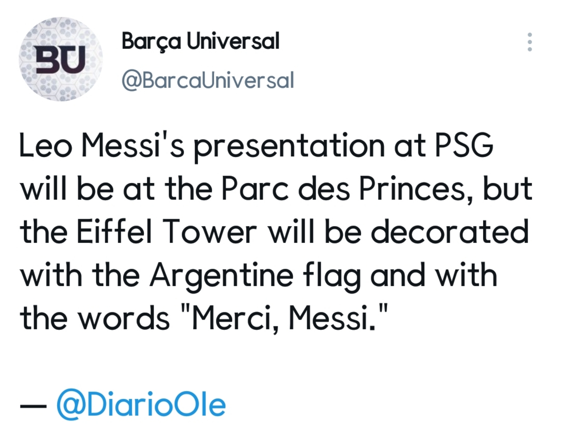 [Diario Ole] PSG에서 메시의 프레젠테이션은 PSG 홈구장에서 있을 예정