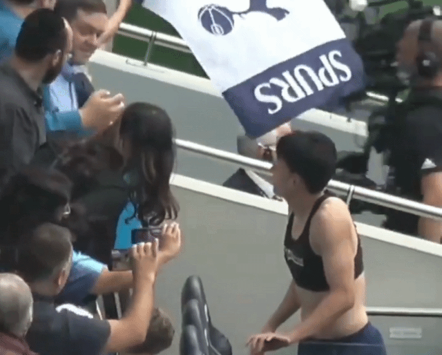 오늘자 경기 끝나고 팬에게 유니폼 선물하는 손흥민.gif