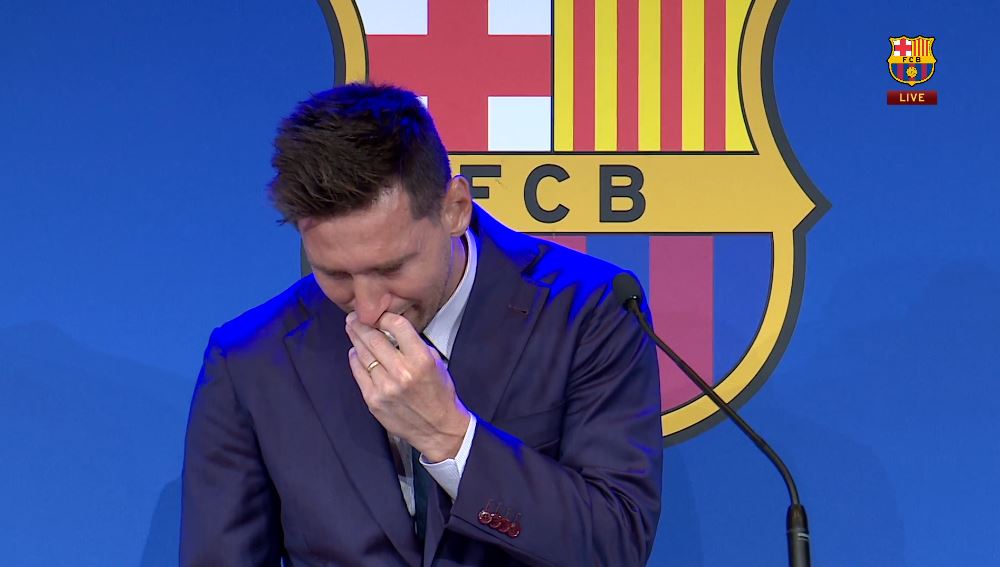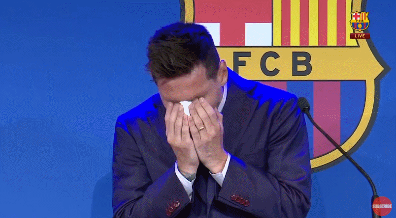 | 기자회견에서 감사인사를 전한 후 눈물을 흘리는 메시 | |