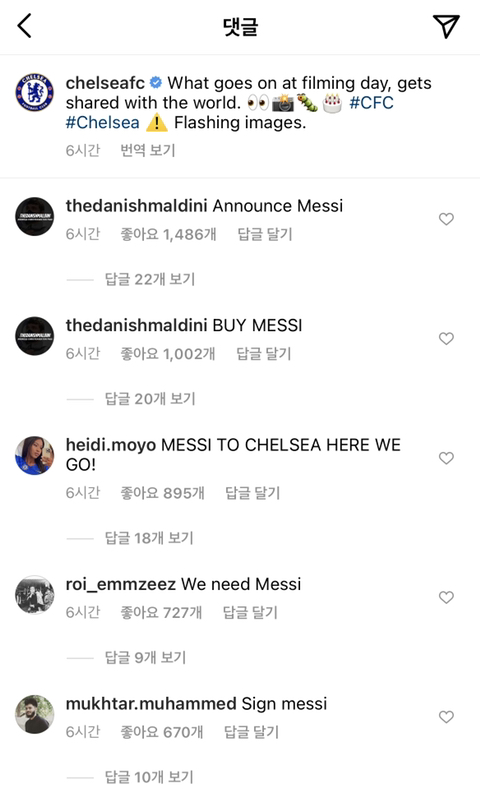 첼시 - 메시를 원하는 댓글들ㅋㅋㅋㅋ